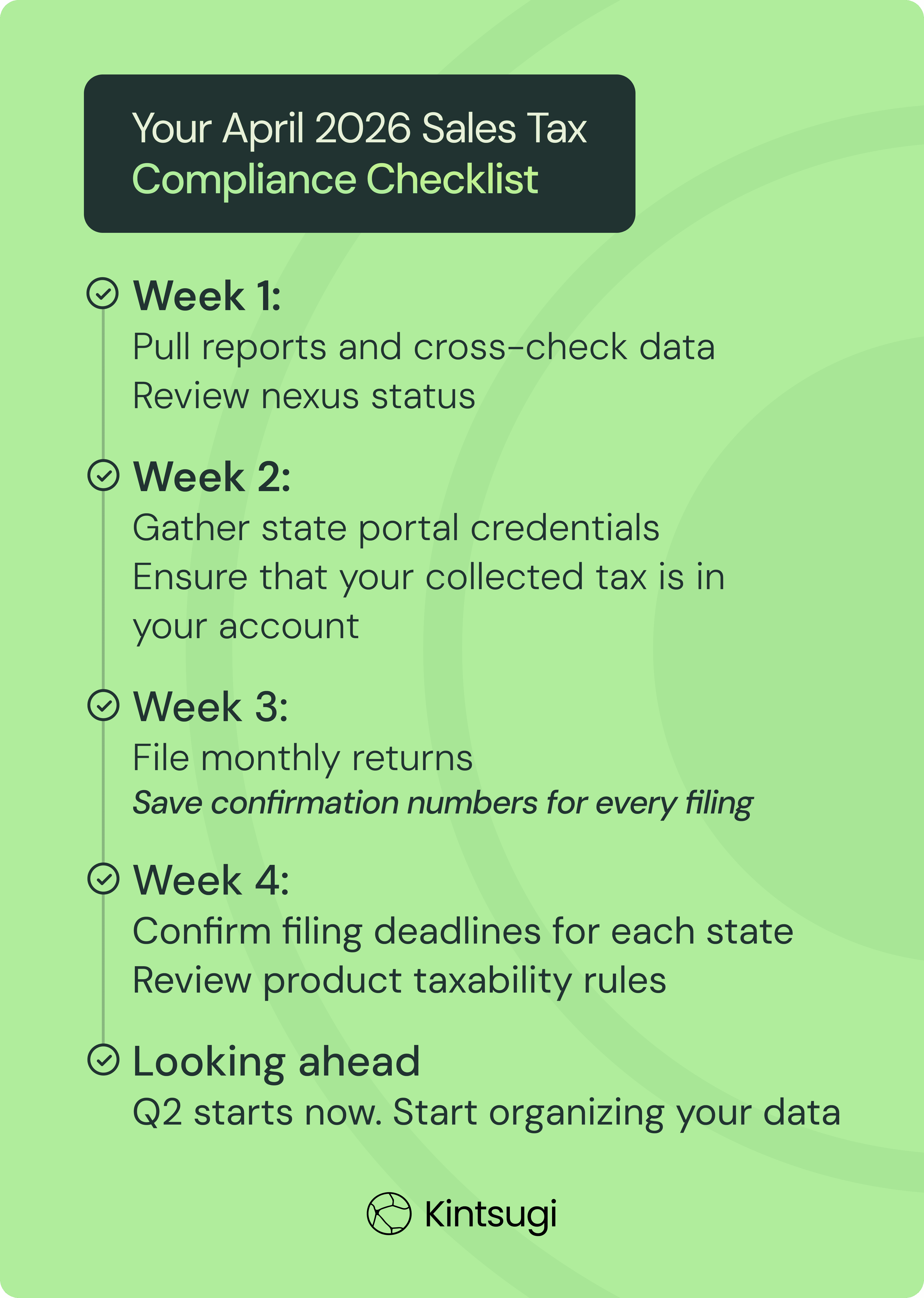Your Monthly Sales Tax Compliance Checklist: April 2026
