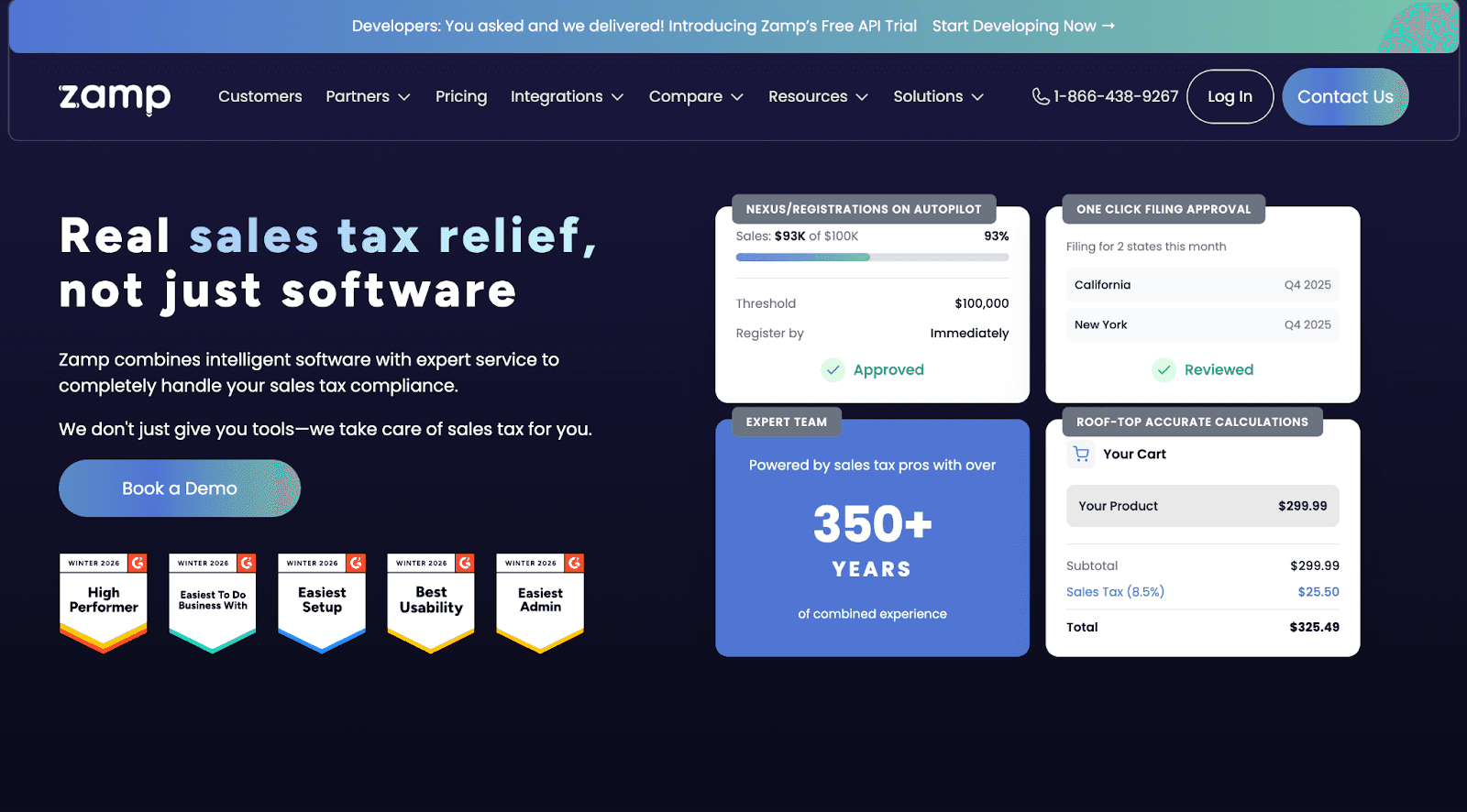 Zamp | Teams wanting fully managed sales tax compliance | Done-for-you filings, notice handling, predictable pricing |