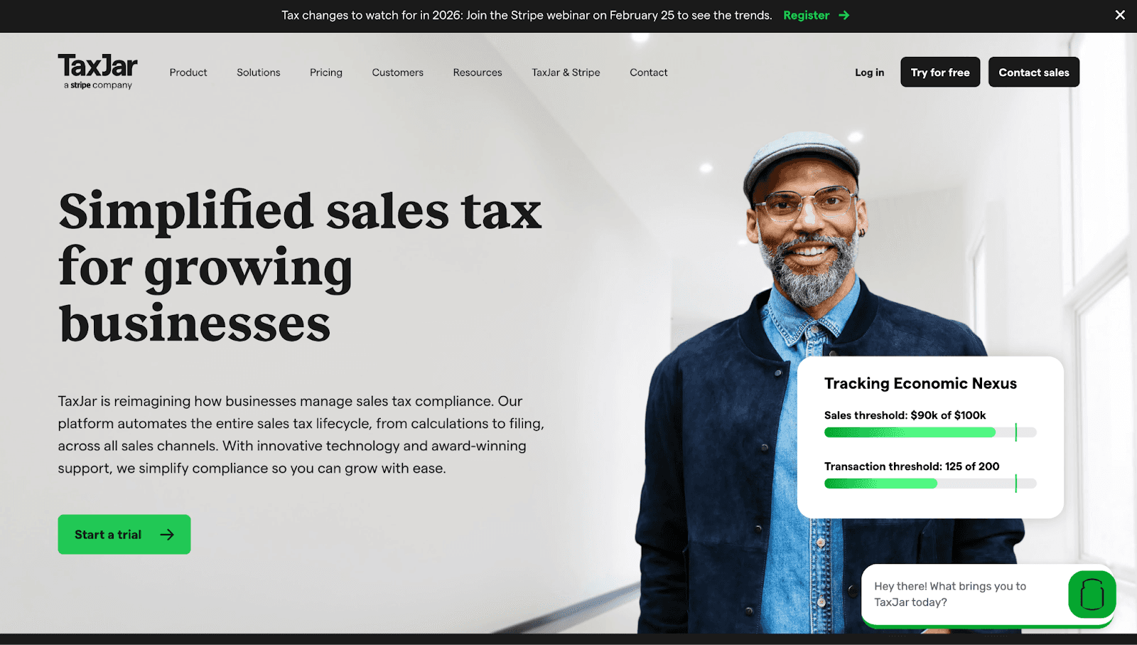 Now part of Stripe, TaxJar is a favorite among online retailers for its simplicity. Unlike enterprise tools that require complex setup, TaxJar offers a plug-and-play dashboard known for its "Sales Tax Traffic Light" system, which visualizes exactly where you have economic nexus.