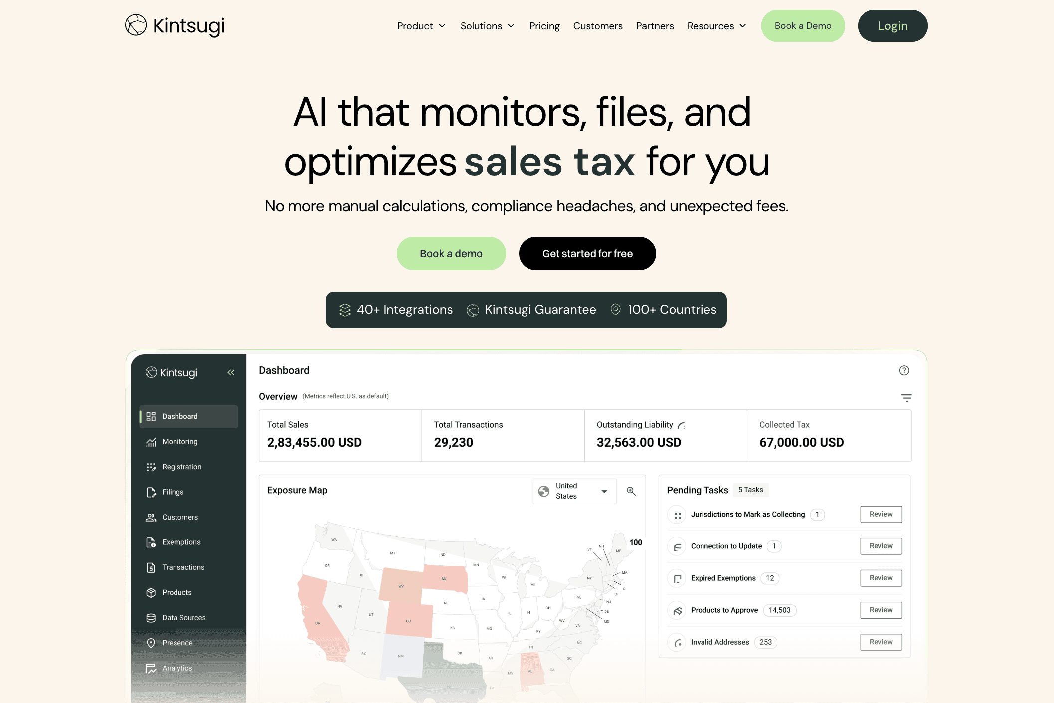 Getting Started: To begin, you can sign up for its Free plan for $0 that offers several free features like risk assessment, exposure monitoring, address validations, and sales tax nexus to name a few. You can also book a demo. The Kintsugi onboarding team provides step-by-step guidance, making it easier to achieve and maintain sales tax compliance from day one.