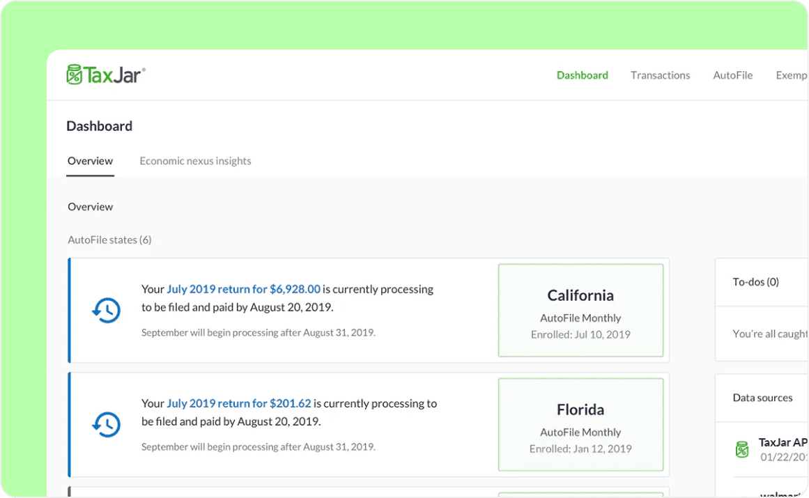 Full audit trails, exemption certificate management, and detailed reporting for enterprise tax departments.