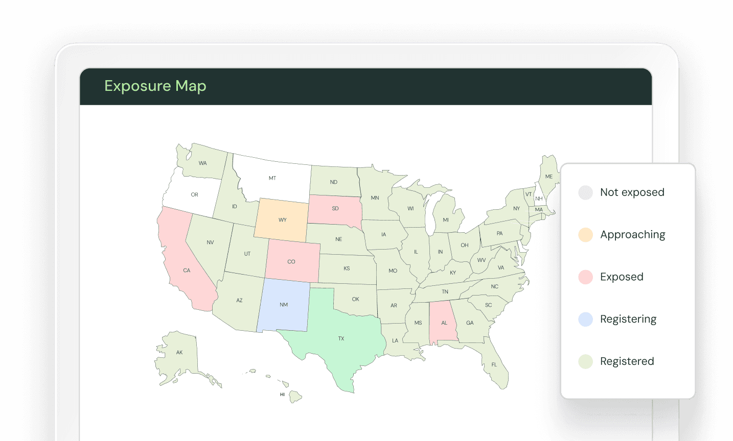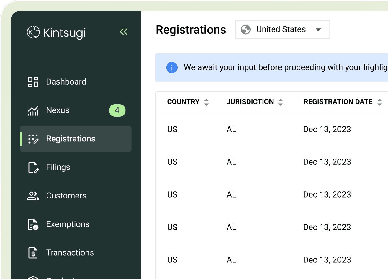 AI‑native automation: product categorization, exposure (nexus) monitoring, registrations, and filings