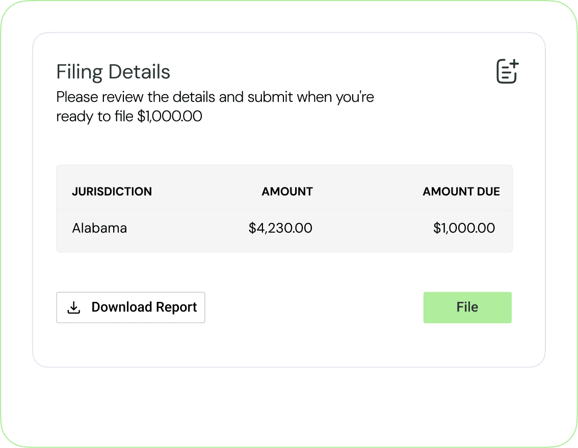 Never miss a deadline. Kintsugi automatically prepares and files on-time returns in all your registered jurisdictions.
