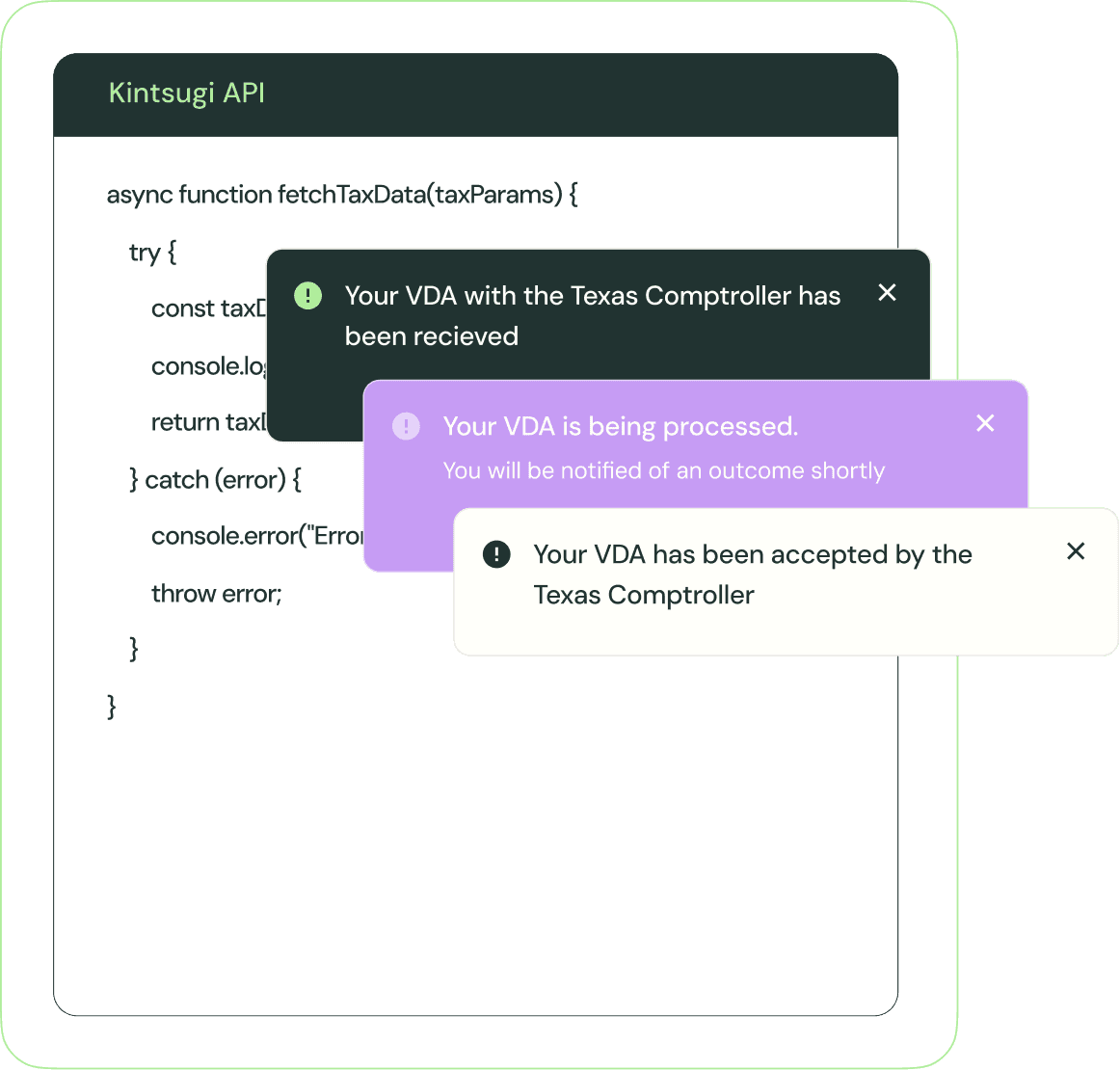 With seamless integrations into your billing or ERP systems, Kintsugi ensures accurate tax is collected at the point of sale, every time.